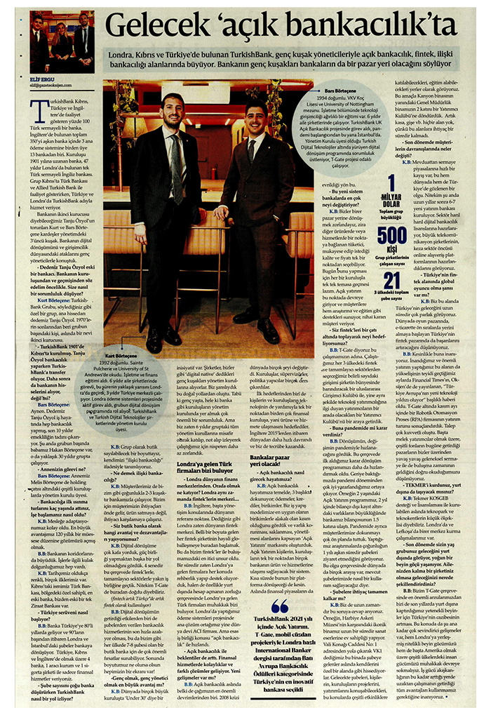 Londra, Kıbrıs ve Türkiye’de bulunan TurkishBank, genç kuşak yöneticileriyle açık bankacılık, fintek, ilişki bankacılığı alanlarında büyüyor. Bankanın genç kuşakları bankaların da bir pazaryeri olacağını söylüyor.