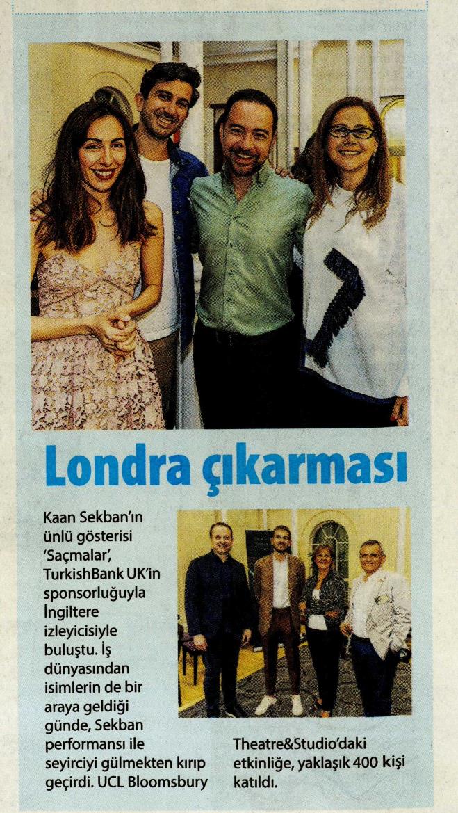 Geçmiş yıllarda Londra’da Cem Yılmaz’ın Eventim Apollo dünya galası ve Orhan Pamuk’un Somerset House ve BFI(British Film Institute)’daki etkinliklerine verdikleri desteklerle, Londra’nın kültür ve sanat dünyasında da yerlerini almışlardı. Komedi alanındaki ilgilerini Kaan Sekban’ın “Saçmalar” gösterisiyle bir daha belli eden TurkishBank UK, Londra’nın Türk topluluğunu bu güzel etkinlikte tekrar bir araya getirmiş oldu.